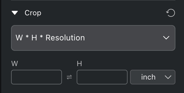 Anch. x Alt. x Res.– Ingresa el ancho y alto fijos con resolución para recortar. La unidad de pulgada ahora está disponible para el recorte Ancho * Alto * Resolución.