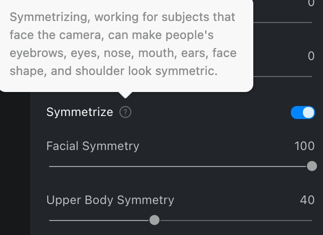 Usa el deslizador para ajustar el efecto de simetría facial que se ha aplicado a la imagen.