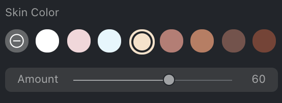 Este deslizador ajustará la temperatura del color de piel aplicado que hayas seleccionado. Moverlo hacia la izquierda proporcionará un efecto más frío en el color de la piel, y moverlo hacia la derecha proporcionará un efecto más cálido en el color de la piel.