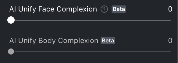 A veces, el color de la piel del cuerpo del personaje es desigual (marca de tono solar), y la función de unificar tono de piel del cuerpo con IA se puede usar para igualar la piel del cuerpo del personaje y hacer que el color del rostro sea más consistente.