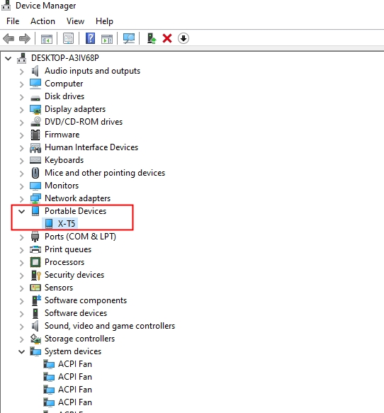 Para el sistema Windows, ve a Administrador de Dispositivos, en Dispositivos Portátiles, y verifica si tu cámara ha sido conectada a tu computadora.
