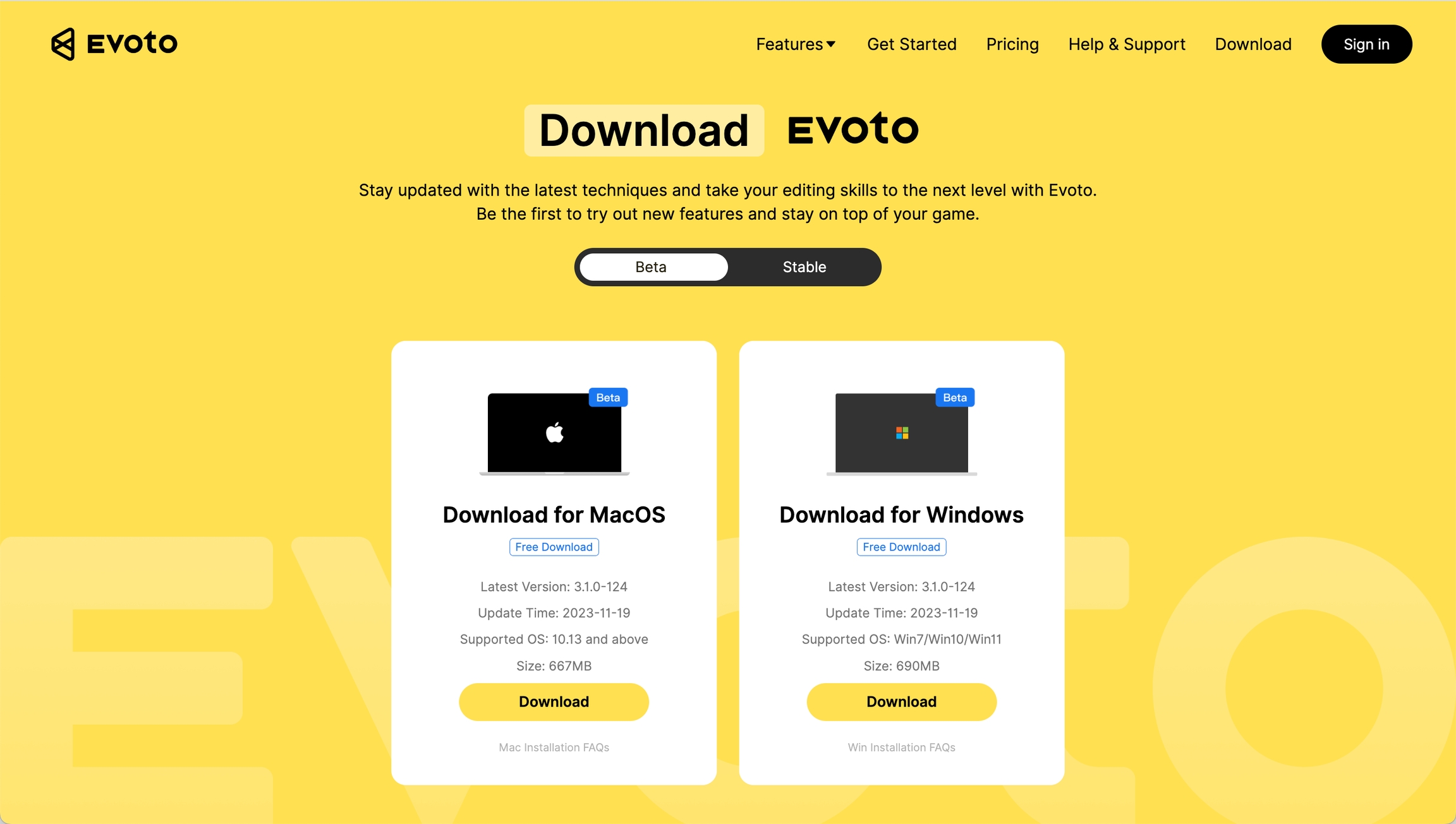 Puede acceder a la página de descarga desde la web oficial de Evoto