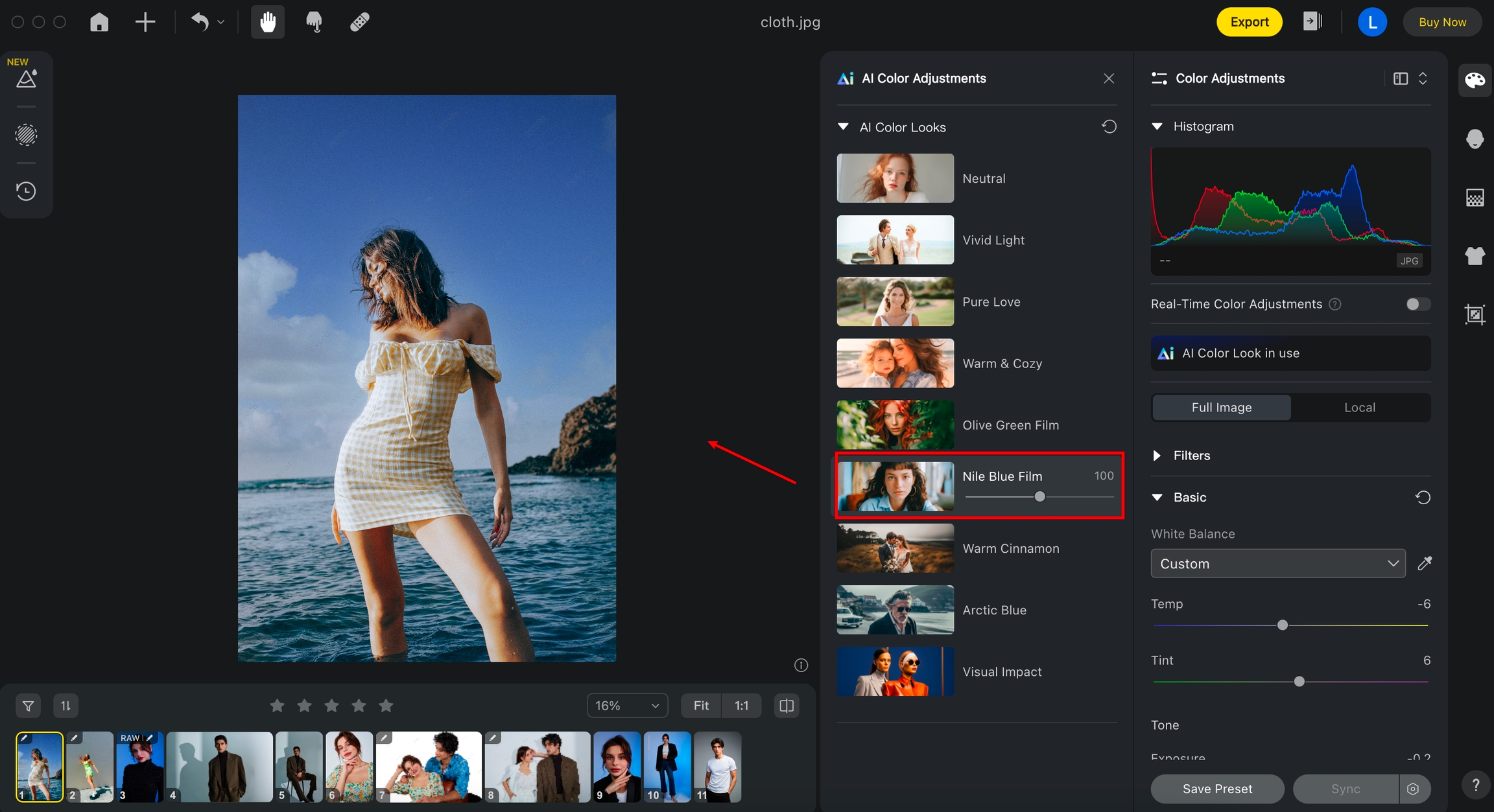 選択したカラールックは、自動的にプレビューエリアに表示されている画像に適用されます。