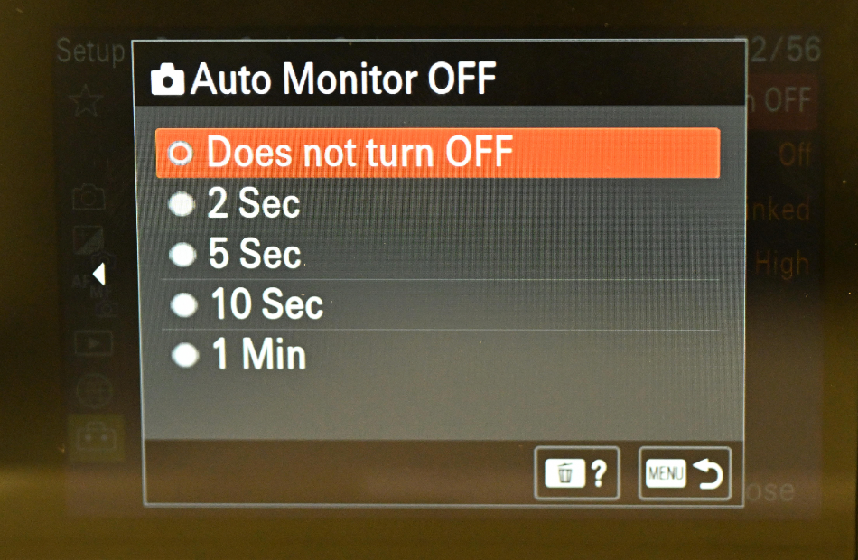 카메라 설정을 "자동으로 꺼짐"으로 설정하는 것을 권장합니다. 왜냐하면 카메라가 자동으로 꺼진 경우 Evoto도 컴퓨터에서 연결이 끊어지기 때문에 다시 테더를 활성화하려면 USB 케이블을 다시 연결해야 합니다.