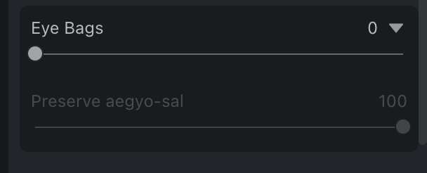 It also contains a slider for preserving Aegyo-sal where the default to be set as 100%, remaining the puffy eye while you remove the eye bag.