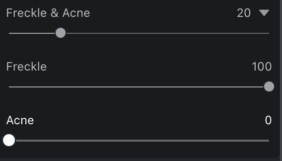 We have distinguished the Freckle and Acne removal. You will need to apply the Freckle & Acne feature first in order to activate the Freckle slider and Acne slider.