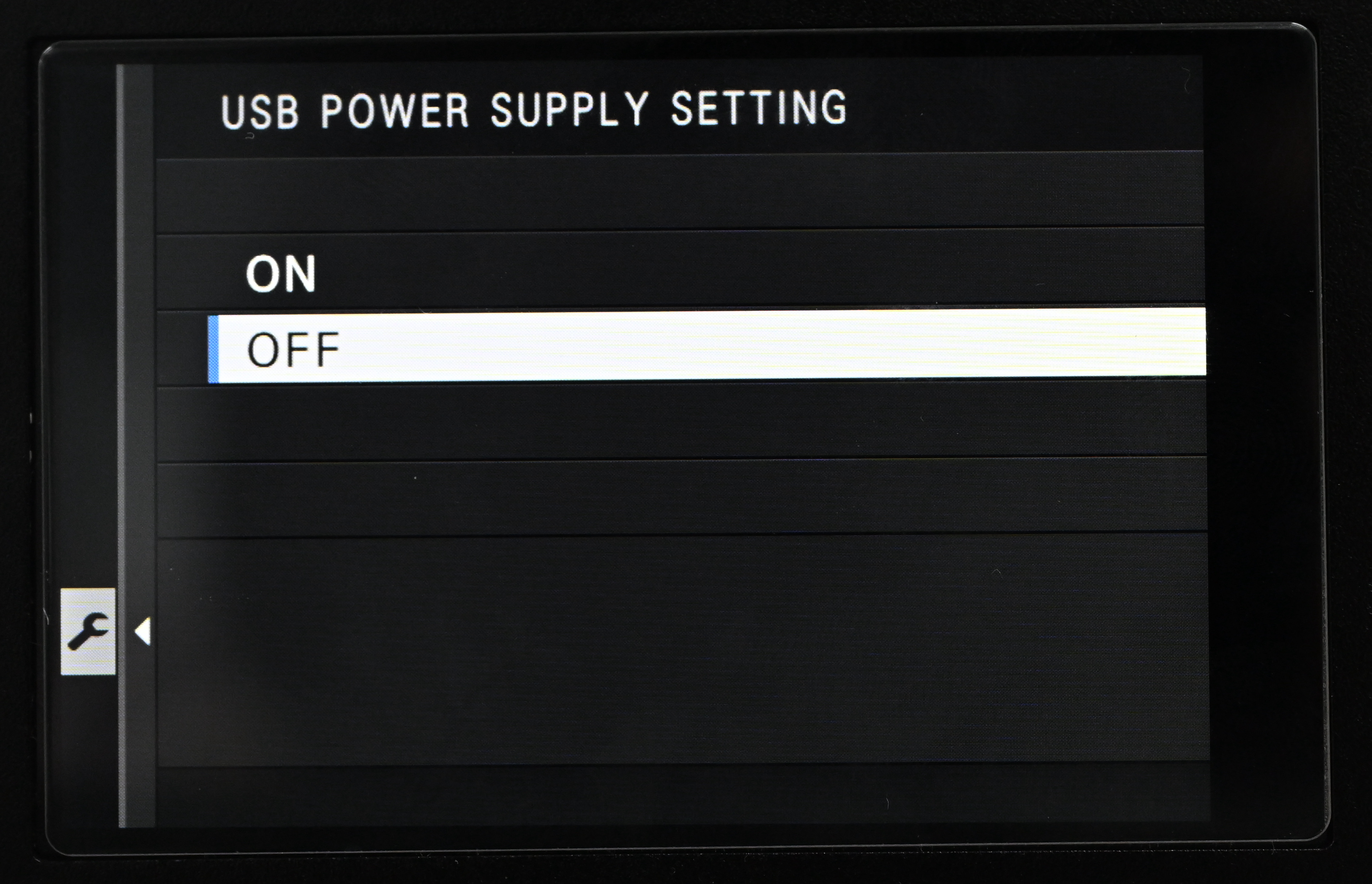 <figure><img src="https://2980714574-files.gitbook.io/~/files/v0/b/gitbook-x-prod.appspot.com/o/spaces%2Fiqt6xl1uV1kdZsesr3jZ%2Fuploads%2FRzTshiCRr56k1FC604zl%2F%E8%81%94%E6%9C%BA%E6%8B%8D%E6%91%84_1297.JPG?alt=media&#x26;token=c84c79b0-4820-4015-b864-19d15dd4747d" alt=""><figcaption><p><strong>Turn OFF</strong> the USB Power Supply Setting</p></figcaption></figure>