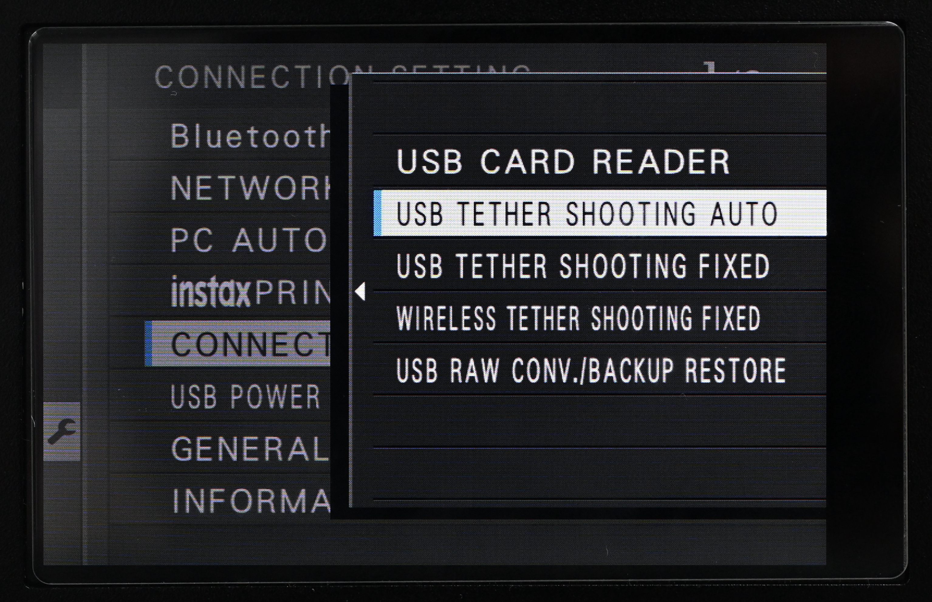 Step 2. Under **Connection Setting**, check the **Connection Mode**, and switch the connection mode to **USB tether shooting AUTO**.