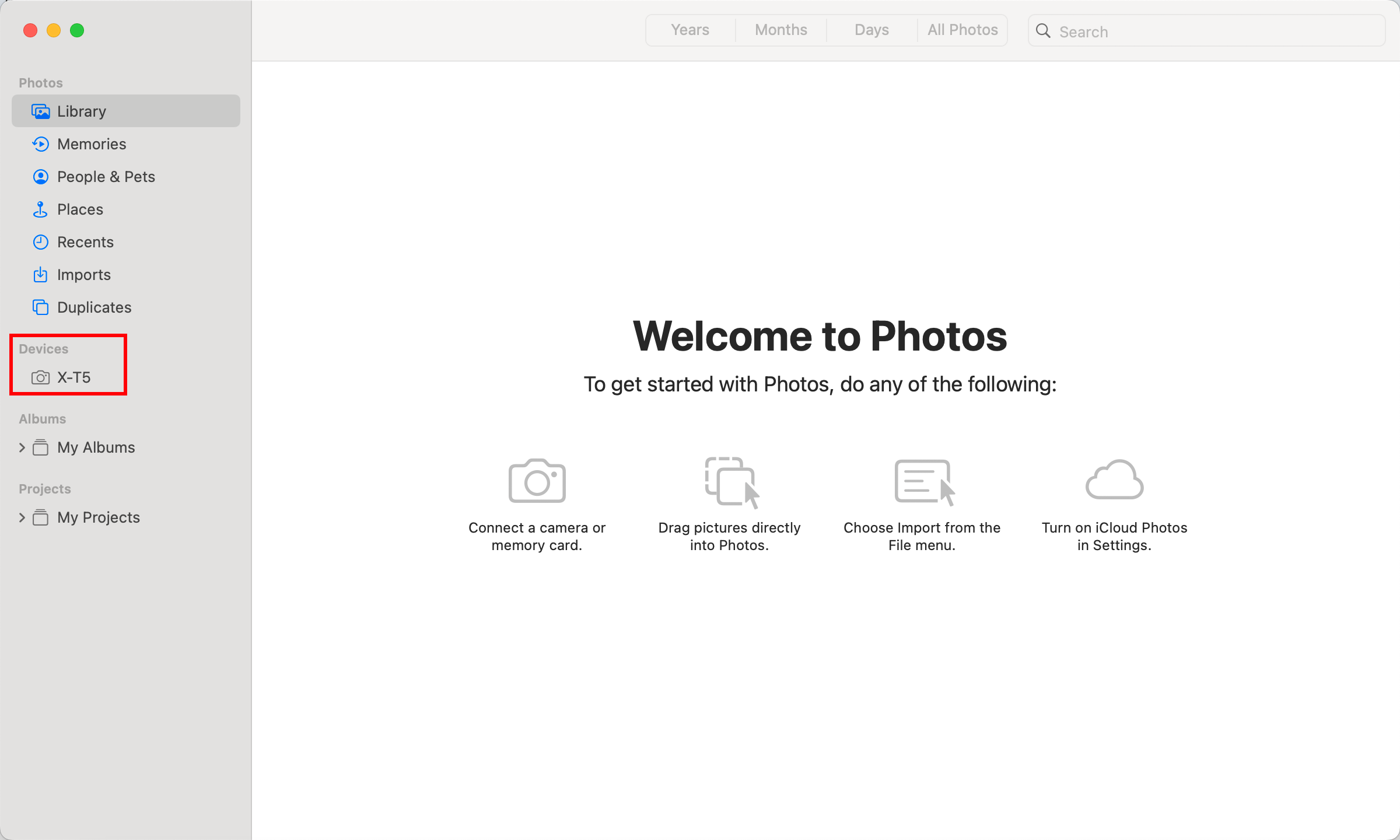 <table><thead><tr><th width="291">For Windows System</th><th width="270"> For MacOS Operation System</th></tr></thead><tbody><tr><td>For Windows System, go to <strong>Device Manager</strong>, under <strong>Portable Devices</strong>, and check whether your camera has been connected to your computer.</td><td>For MacOS System, go to <strong>Photo</strong>, and check whether your camera has been connected to your computer under <strong>Devices</strong>.</td></tr><tr><td><img src="https://2980714574-files.gitbook.io/~/files/v0/b/gitbook-x-prod.appspot.com/o/spaces%2Fiqt6xl1uV1kdZsesr3jZ%2Fuploads%2FOQNf0jk9s333LHehVWib%2Fimage.png?alt=media&#x26;token=6b1c6fa8-47f1-4e13-a242-6b3e9b235e75" alt="" data-size="original"></td><td><img src="https://2980714574-files.gitbook.io/~/files/v0/b/gitbook-x-prod.appspot.com/o/spaces%2Fiqt6xl1uV1kdZsesr3jZ%2Fuploads%2FuYuX1JYKCF5kxgwCfHBt%2Fimage.png?alt=media&#x26;token=41c3308f-9680-4209-a8fd-db74bb00dbe3" alt="" data-size="original"></td></tr></tbody></table>