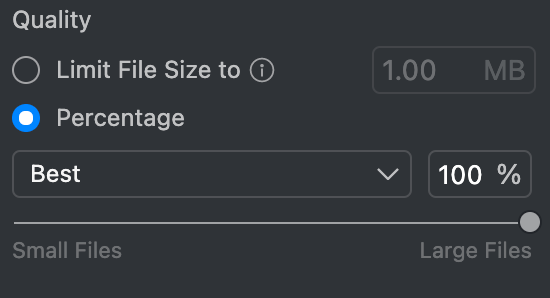 Please note if you input a percentage is too low, the image will be exported at a minimum of 20% quality.