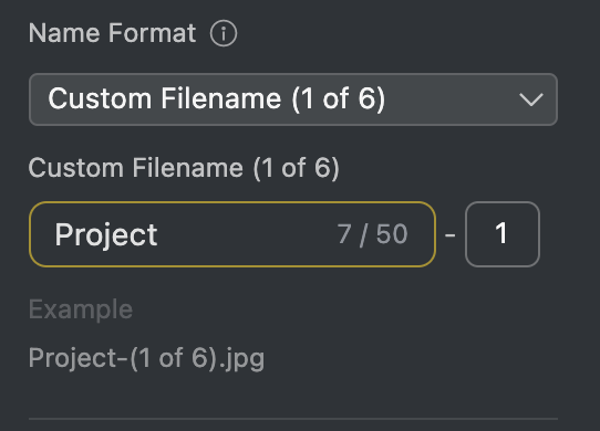 <figure><img src="https://2980714574-files.gitbook.io/~/files/v0/b/gitbook-x-prod.appspot.com/o/spaces%2Fiqt6xl1uV1kdZsesr3jZ%2Fuploads%2FiMgmZuxmzQIT6egmEZV9%2Fimage.png?alt=media&#x26;token=404228dc-2197-4194-aed2-13ab9ecd01e8" alt="" width="271"><figcaption><p>Custom Filename (# of #)</p></figcaption></figure>