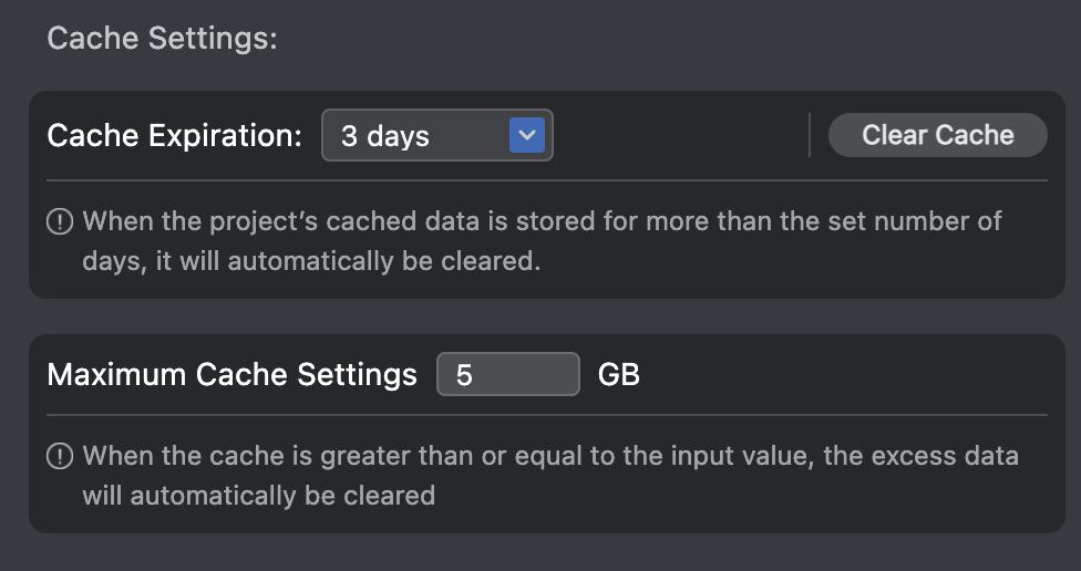 You can set the automatically clear the cache (from 3 to 15 days) or click Clear Cache to clear it manually. You can also set a Maximum Cache limit, and the system will automatically clear the cache once it is excess.